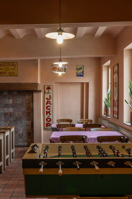 Authentiek bruin café met zithoek, en honesty bar